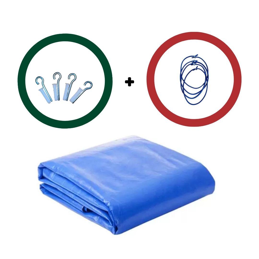 Lona Azul com ilhós 2x2 170 Gramas/m² 310 Micras + Kit Fixação - Garantia 18 Meses